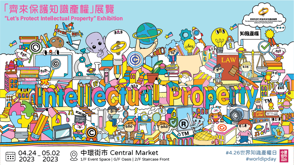 为提高市民尊重和保护知识产权的意识,并响应四月二十六日「世界知识产权日」,知识产权署今日(四月二十四日)起至五月二日于中环街市举办「齐来保护知识产权」展览,欢迎市民参观。